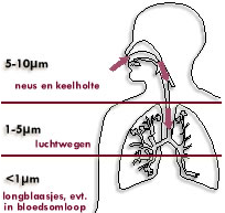 De mate waarin fijnstof binnendringt in het lichaam, is afhankelijk van de grootte van de stofdeeltjes